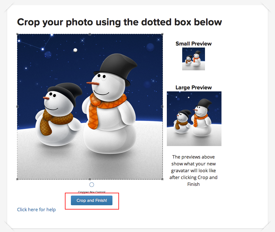 登陆后,点击 “Add one by clicking here!”上传一幅图片作为你的头像。
