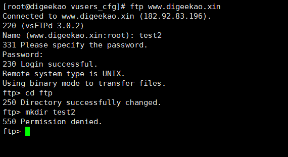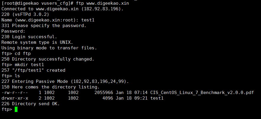 服务器操作系统:Centos 7.3 vsftpd版本:3.0.2 服务器域名:www.digeekao.xin