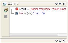Pychar 同时提供了 Variables 和 Watches 窗口,其中调试步骤中所涉及的具体变量的值可以直接在 variable 一栏中查看。